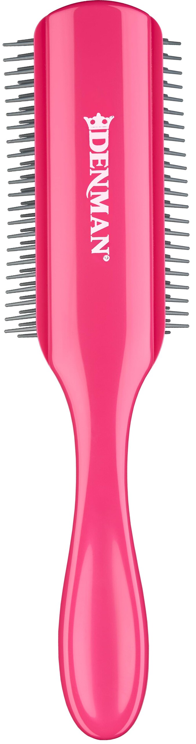 Die klassische Denman-Bürste hat ihren Stammplatz in den Top-Salons dieser Welt. Das längliche, abnehmbare Gummikissen ist das Markenzeichen dieser Bürste. In dieses Rubber-Pad sind die Borsten eingelassen.