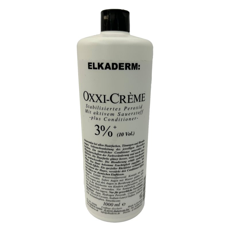 Die Elkaderm Oxxi Créme 3 % 1000ml ist ein stabilisiertes Peroxid mit aktivem Sauerstoff, das speziell für alle Haarfarben, Tönungen und Blondierungen entwickelt wurde. Sie sorgt für eine effektivere Farbveränderung und unterstützt die Pflege des Haares während des Färbens.