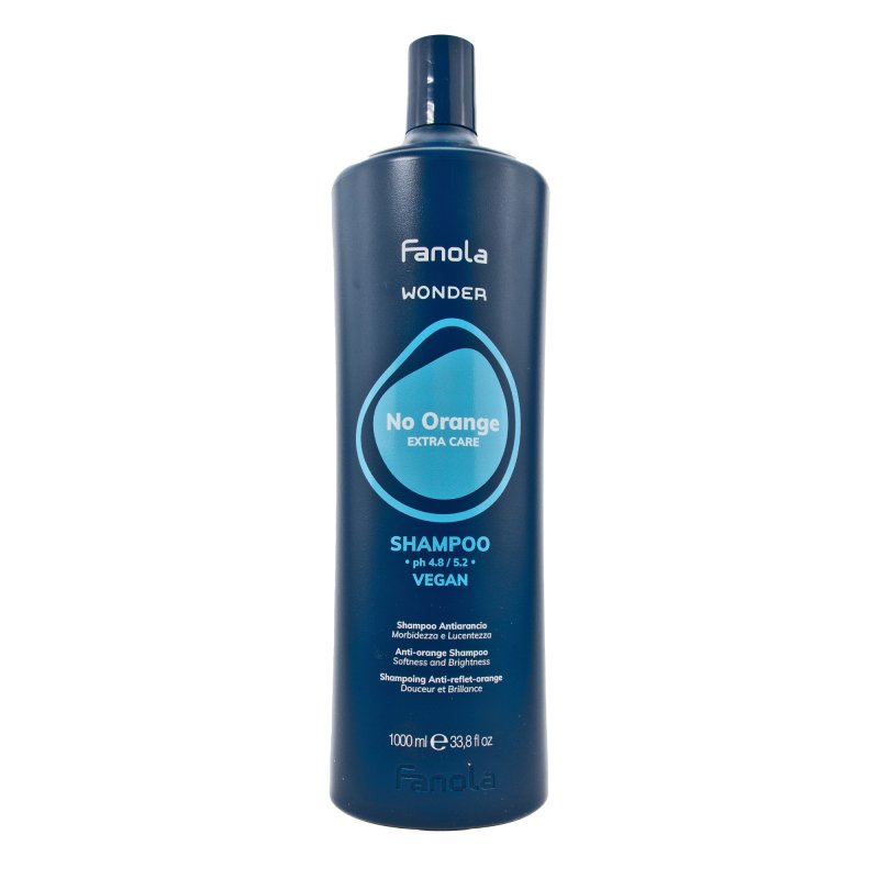 Fanola Wonder No Orange Shampoo 1000ml ist die Weiterentwicklung der No Orange Serie mit starker neutralisierender Wirkung. Es beseitigt Kupfereffekte auf hellkastanienbraunem Haar und verstärkt eisige Töne auf weiß gebleichtem Haar. Gleichzeitig pflegt es das Haar und macht es geschmeidig.
