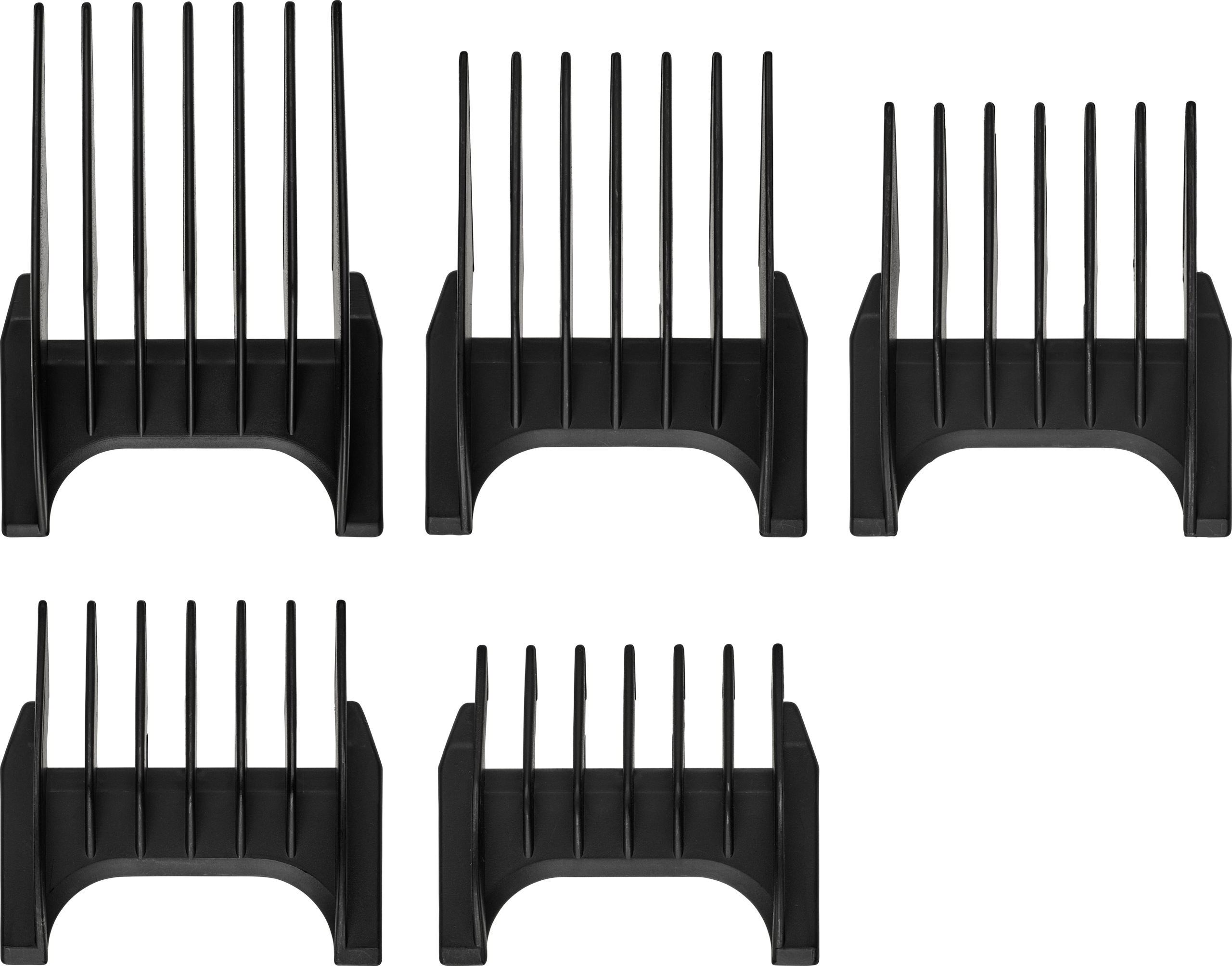 • Zubehör: Ladestation, Kammhalter, 5 Kammaufsätze (4 / 8 / 12 / 16 / 20 mm), Reinigungsbürste, Öl