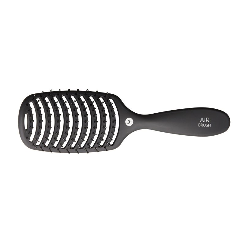 Die HH Simonsen Haarbürste Air Brush Black überzeugt mit ihrem luftigen Design, das einen freien Luftstrom ermöglicht und so ein effektiveres Föhnen während des Kämmens unterstützt. Die flexiblen Borsten gleiten sanft durch das Haar und tragen dazu bei, Haarausfall zu reduzieren.