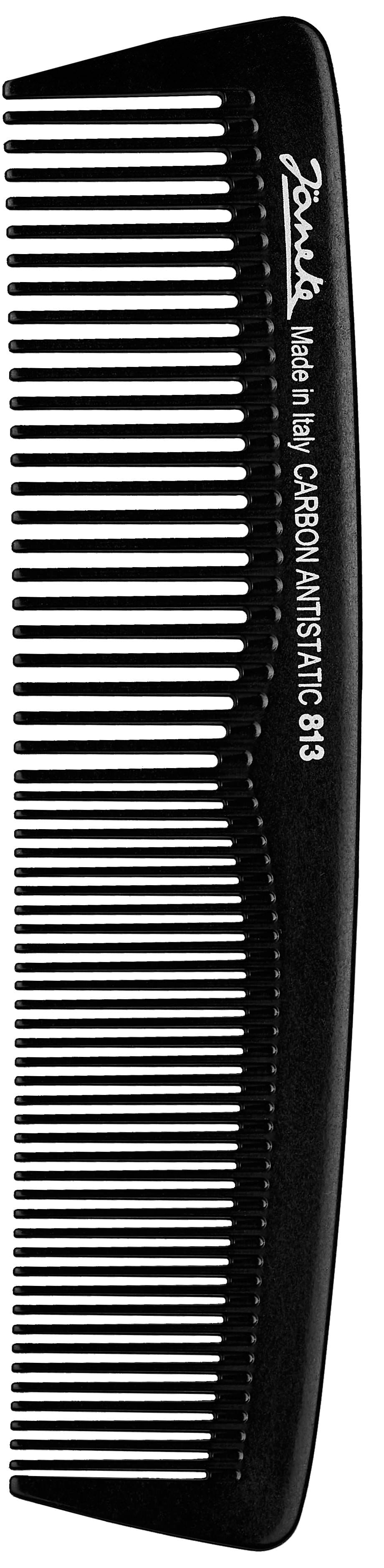 Profi-Kämme aus Carbon Made in Italy: Extrem bruchfest, temperaturunempfindlich sowie resistent gegen Haarkosmetika. Das antistatische Material verhindert die elektrische Aufladung der Haare.