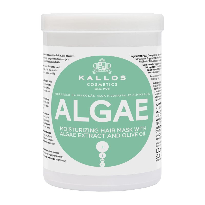 Die Kallos Algae Moisturizing Mask 1000ml ist eine intensive Feuchtigkeitsmaske, die trockenes und strapaziertes Haar von der Ansatz bis in die Spitzen pflegt. Sie versorgt das Haar tiefenwirksam mit Feuchtigkeit, fördert die Geschmeidigkeit und verleiht natürlichen Glanz.