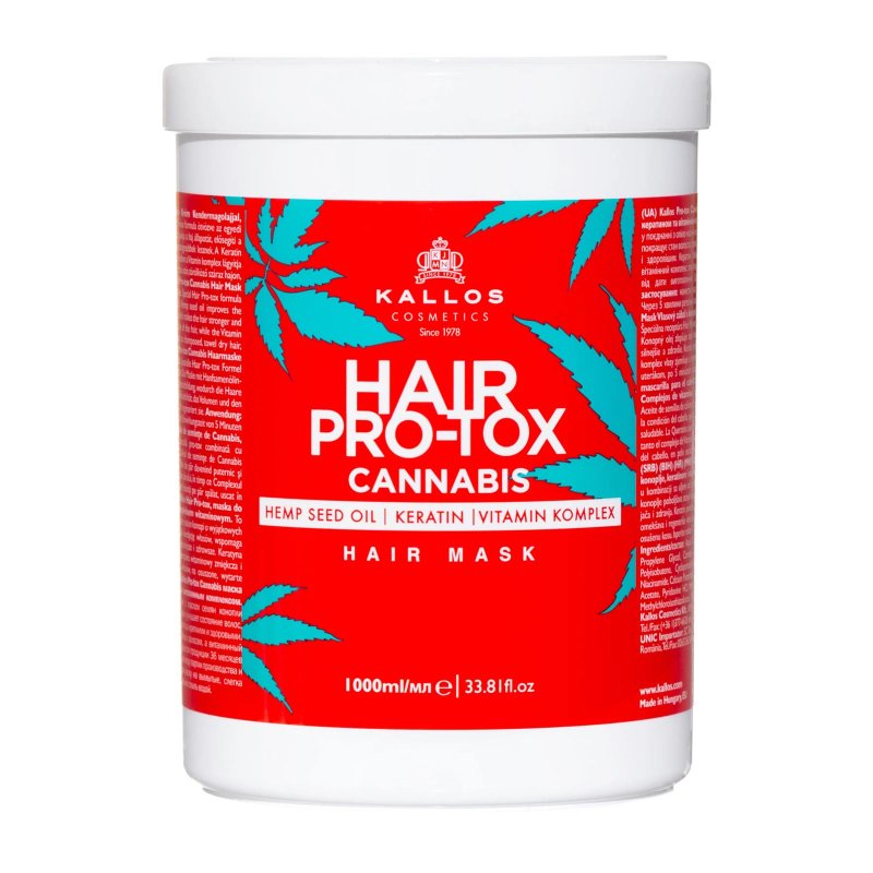 Die Kallos Hair Pro-Tox Cannabis Mask 1000ml ist eine intensiv pflegende Haarmaske, die speziell für kraftloses, glanzloses oder trockenes Haar entwickelt wurde. Mit Hanföl angereichert, unterstützt sie die natürliche Keratinbildung und stärkt die Haarstruktur.
