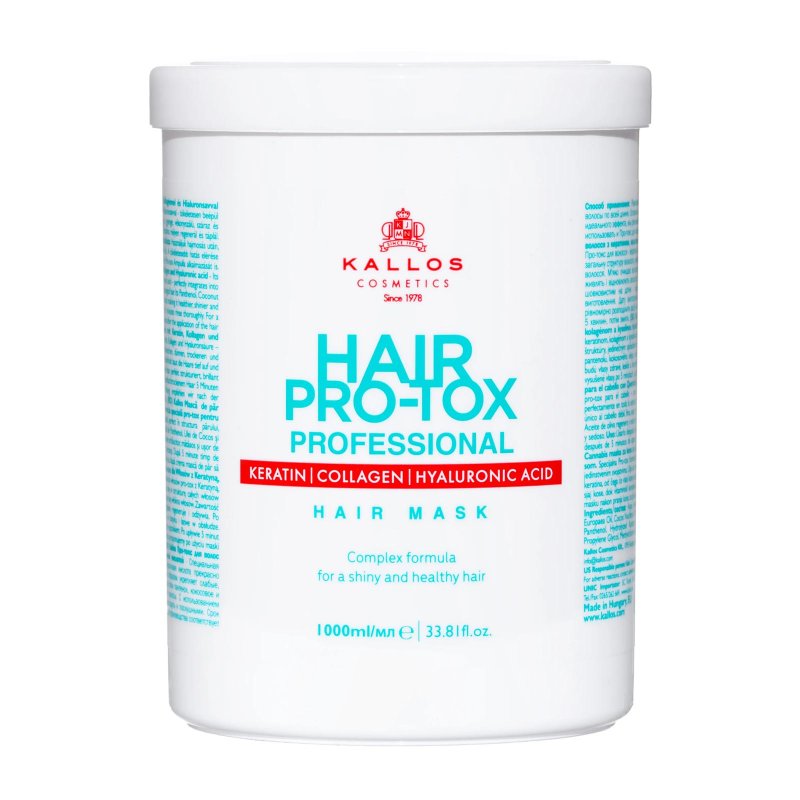 Die Kallos Hair Pro-Tox Mask 1000ml ist speziell für trockenes, sprödes und geschwächtes Haar entwickelt. Die reichhaltige Pflegeformel mit Keratin und Hyaluronsäure regeneriert die Haarstruktur, spendet intensive Feuchtigkeit und schützt effektiv vor Haarbruch und Spliss.