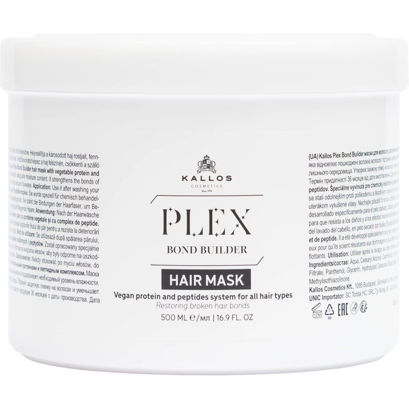 Die Kallos Plex Bond Builder Mask 500ml ist eine intensive Pflegemaske, die speziell zur Regeneration geschädigter Haarstrukturen entwickelt wurde. Sie stärkt das Haar von innen durch die Kombination pflanzlicher Proteine und eines wirkungsvollen Peptidkomplexes.