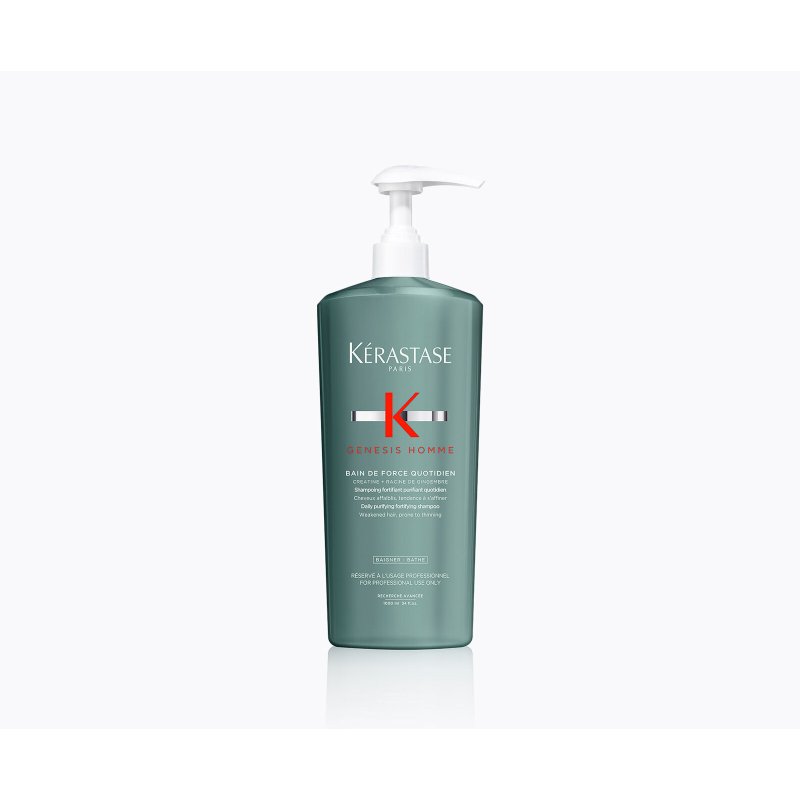 Das Kérastase Genesis Homme Bain de Force Quotidien Shampoo 1000ml ist speziell für Männer entwickelt, die zu Haarverlust neigen. Es kräftigt und verdickt das Haar, um einem dünner werdenden Haar entgegenzuwirken und sorgt für einen sichtbar volleren Look.