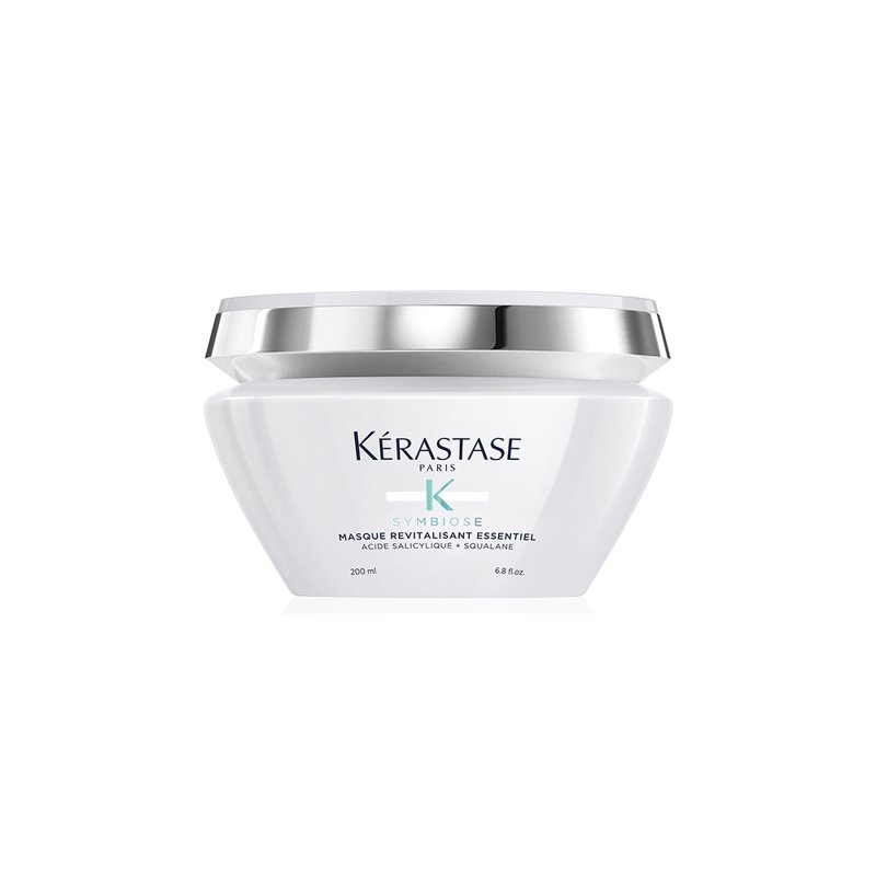 Die Kérastase Symbiose Masque Revitalisant Essentiel 200ml ist eine Haarmaske, die speziell für strapaziertes Haar und Kopfhaut mit Schuppenneigung entwickelt wurde. Sie pflegt intensiv, repariert geschädigte Haarfasern und entfernt Rückstände von Schuppen aus den Längen.