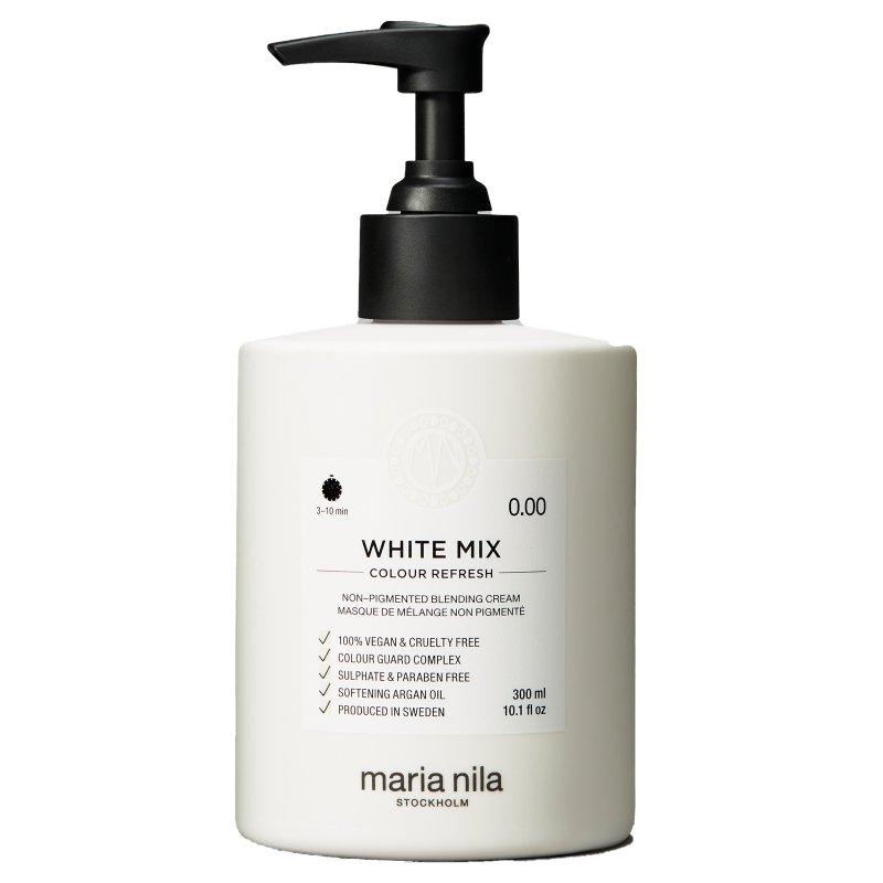 Maria Nila Colour Refresh White Mix 0,00 300ml ist ein Produkt zur Auffrischung und Intensivierung der Haarfarbe sowie für temporäre Farbveränderungen geeignet. White Mix enthält keine Farbpigmente und wird zum Mischen oder Abschwächen anderer Colour Refresh Farbtöne verwendet.