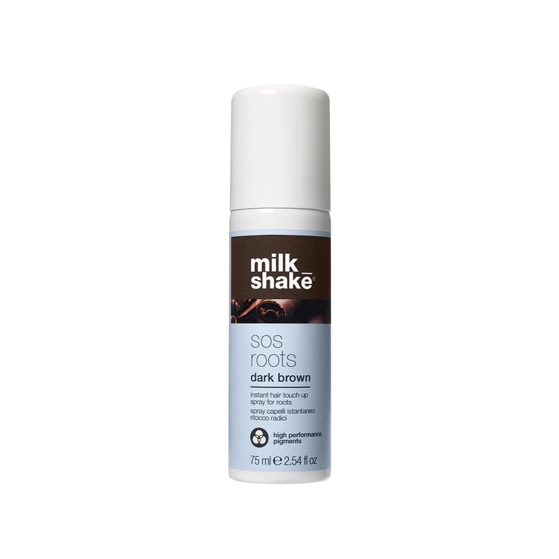 milk_shake SOS Roots Dunkelbraun 75ml ist ein handliches Spray, das graue Ansätze bis zur nächsten Haarwäsche zuverlässig kaschiert. Der feine Sprühnebel trocknet schnell und verleiht dem Ansatz sowie grauen Haaren ein intensives, dunkles Braun.