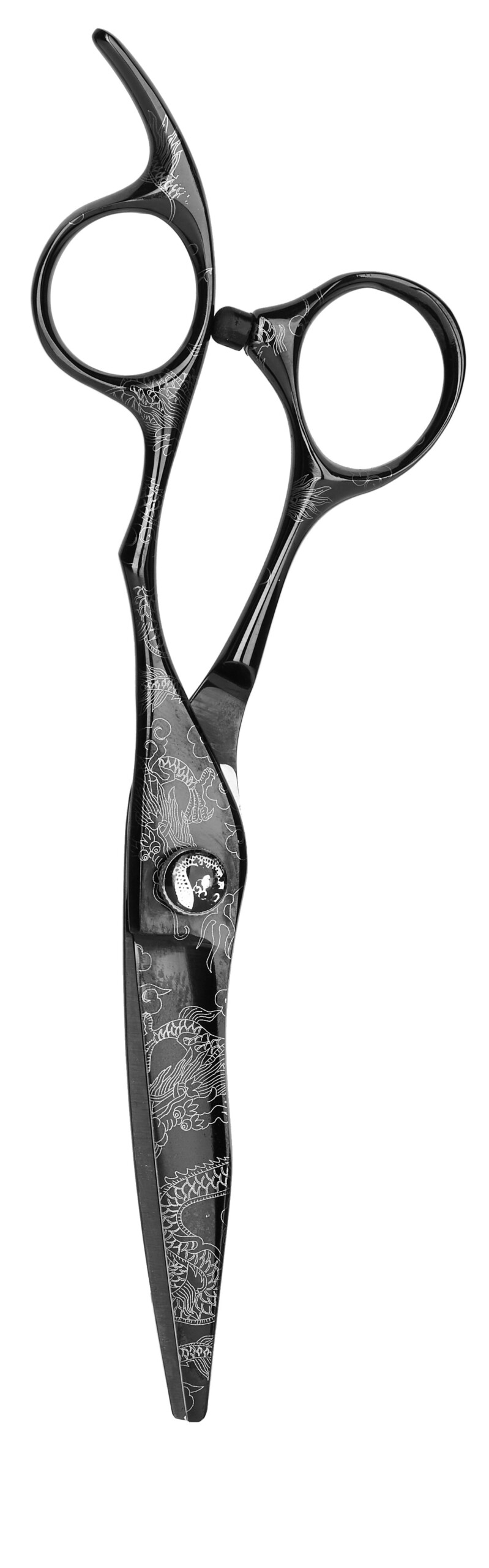 Die Dragon-Scheren von Olivia Garden heben sich bereits auf den ersten Blick deutlich von der Masse ab: Die Oberfläche der Schere ist mit feinen Drachen-Mustern ziseliert.