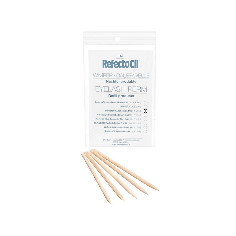Die RefectoCil Eyelash Curl&Lift Refill Rosenholzstäbchen ermöglichen eine unkomplizierte Fixierung der Wimpern auf den Wimpernrollen. Sie sind speziell für die Anwendung mit Eyelash Curl entwickelt.