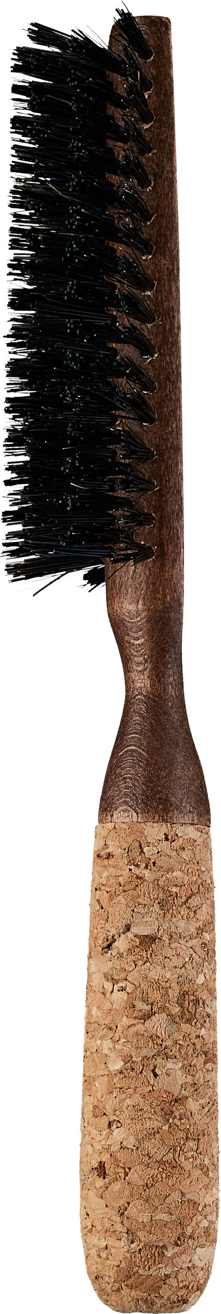 Holzbürste mit Korkgriff und verstärkten Mischborsten aus 65 % Wildschwein und 35 % Nylon.