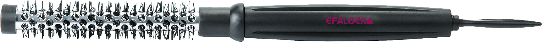 Die Profi-Bürste ist ein Allroundtalent für jeden Salon. Sie hat einen luftdurchlässigen, wärmespeichernden Bürstenkörper aus Aluminium. Dieser füllt sich beim Föhnen mit heißer Luft. Die Lüftungslöcher sorgen dabei für die Luftzirkulation bei gleichzeitiger Wärmeverteilung. Das Haar lässt sich schnell trocknen und stylen. Die hitzebeständigen Nylonborsten (bis 180 °C) sorgen für einen gesunden Glanz. Der Griff ist ergonomisch geformt, hitzebeständig bis zu 110 °C und hat eine versenkbare Abteilspitze.