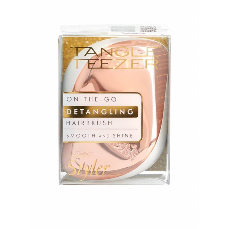 Der Tangle Teezer Compact Styler Rose Gold Cream ist eine elegante Haarbürste, die durch ihr pastellrosafarbenes und cremeweißes Design besticht. Sie vereint zeitlose Optik mit praktischer Funktionalität.