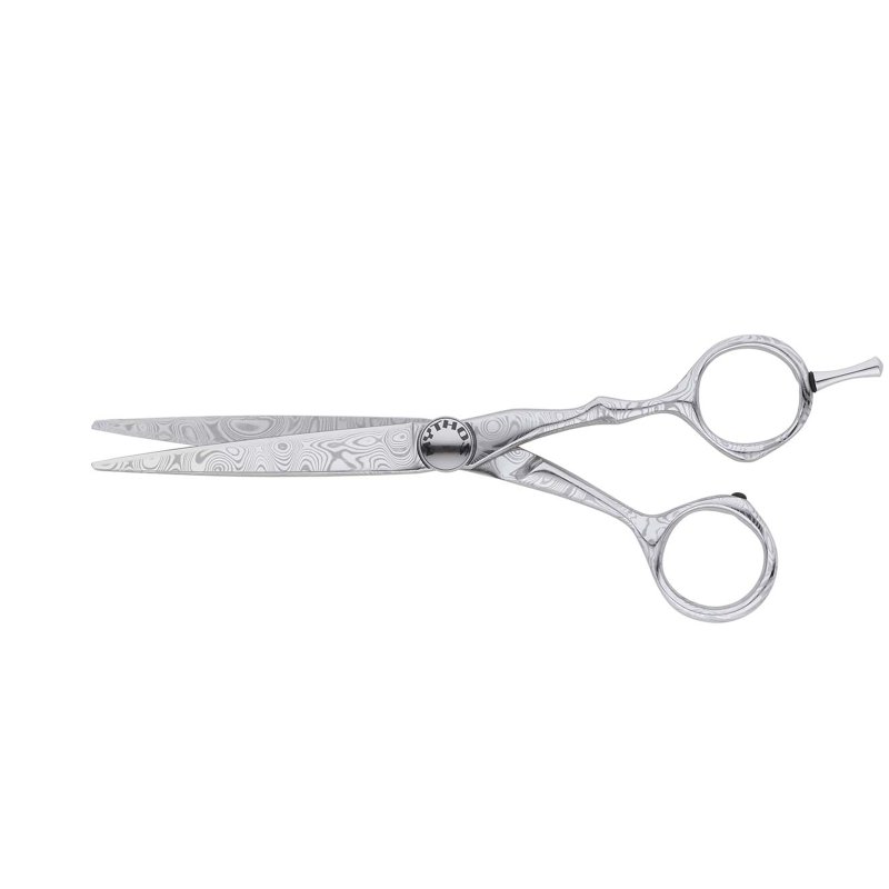 Die Tondeo Haarschneideschere Mythos Damast Offset 6.0 ist eine exklusive Friseurschere aus 100 % rostfreiem Damaszener Stahl. Jede Schere zeigt eine einzigartige Maserung und verbindet traditionelles Solinger Schmiedehandwerk mit moderner technischer Präzision.