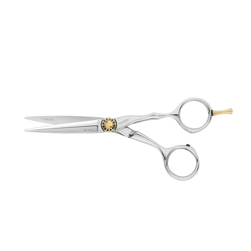 Die Tondeo Haarschneideschere Mythos Offset 5.5 ist ein hochwertiges Werkzeug für professionelle Friseure. Sie besticht durch ihre ergonomische Offset-Form und das geringe Gewicht von nur 45 g, die ein präzises und ermüdungsfreies Arbeiten ermöglichen.