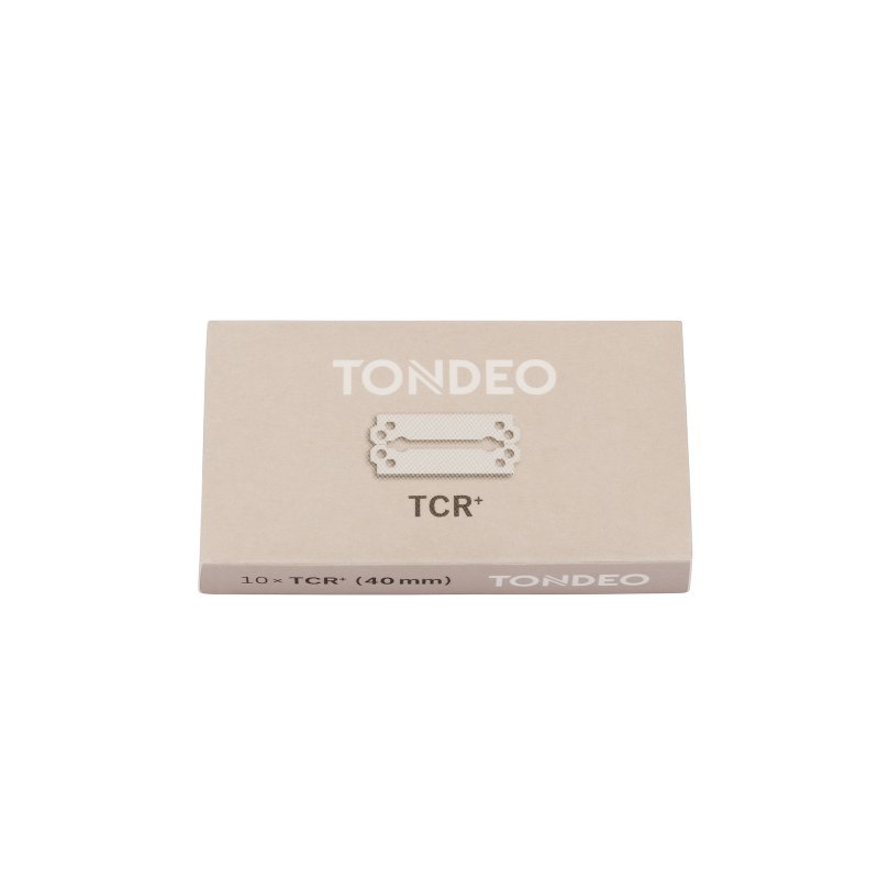Die Tondeo Klingen TCR+ sind kurze, rostfreie Doppelklingen, die präzises und sicheres Arbeiten ermöglichen. Dank ihrer chemisch resistenten Spezialbeschichtung und der hochwertigen Chromnitrid-Versiegelung bieten sie hervorragende Gleiteigenschaften für ein sanftes Rasiererlebnis.