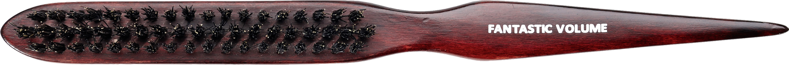 Hochwertige Holzbürste mit 3 Reihen Wildschweinborsten. Durch die besondere Anordnung der Borsten lässt sich ein fantastisches Haarvolumen beim Toupieren erzeugen.