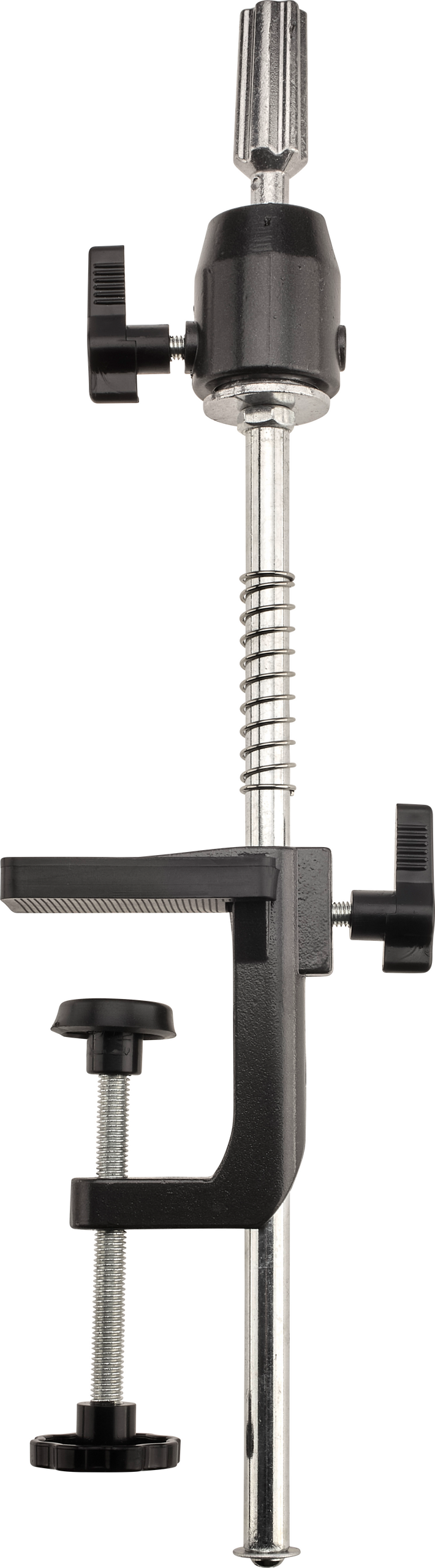 Höhenverstellbares Stativ für Übungsköpfe zur Befestigung an Tischplatten. Geeignet für eine maximale Tischplattenstärke von 5 cm.