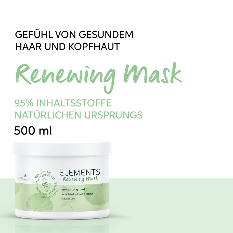 Die Wella Professionals Elements Renewing Mask 500ml ist eine intensive und feuchtigkeitsspendende Haarpflege, die sich für alle Haartypen eignet. Sie bekämpft effektiv Frizz und Haarbruch und ist dabei silikonfrei.