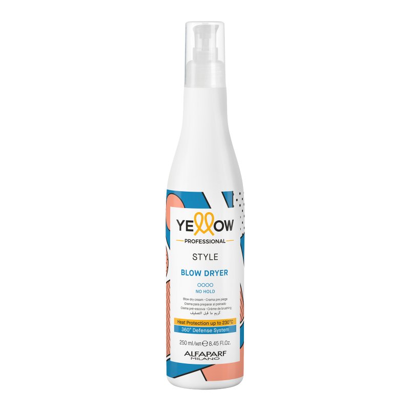 Die Yellow Professional Style Blow Dryer 250ml ist eine leichte Blow Dry Cream, die das Haar effektiv vor Hitze schützt und die Trockenzeit verkürzt. Sie sorgt für ein hydratisiertes, definiertes Styling mit natürlichem Glanz.