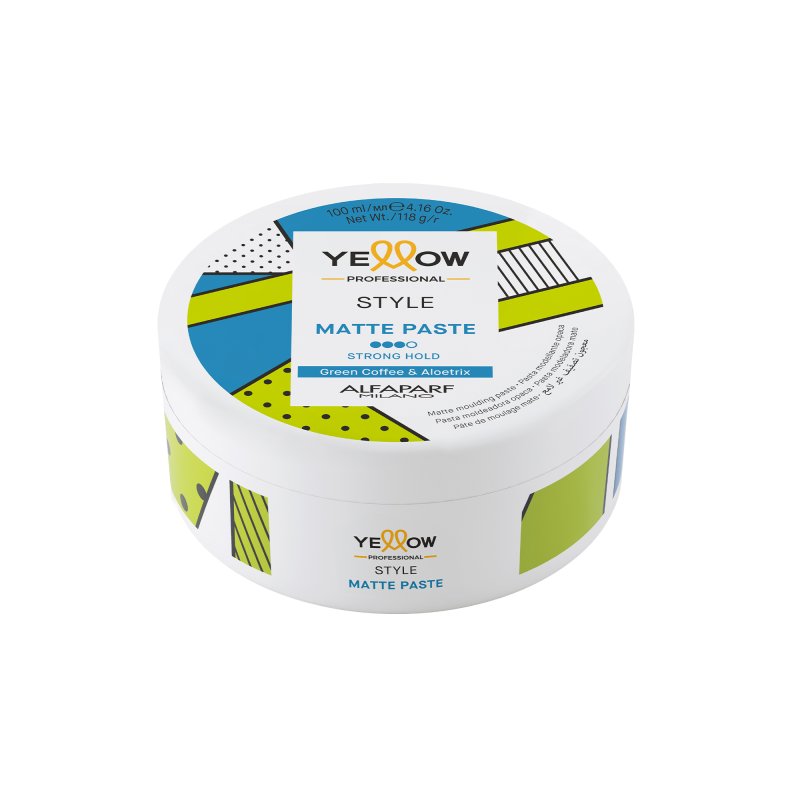 Die Yellow Professional Style Matte Paste 100 ml ist eine formbare Styling-Paste, die starken Halt mit einem matten Finish verbindet. Ihre geschmeidige, dichte Textur ermöglicht vielseitige Stylings – von präzise definiert bis bewusst zerzaust – und sorgt für ein natürliches Aussehen ohne Glanz.